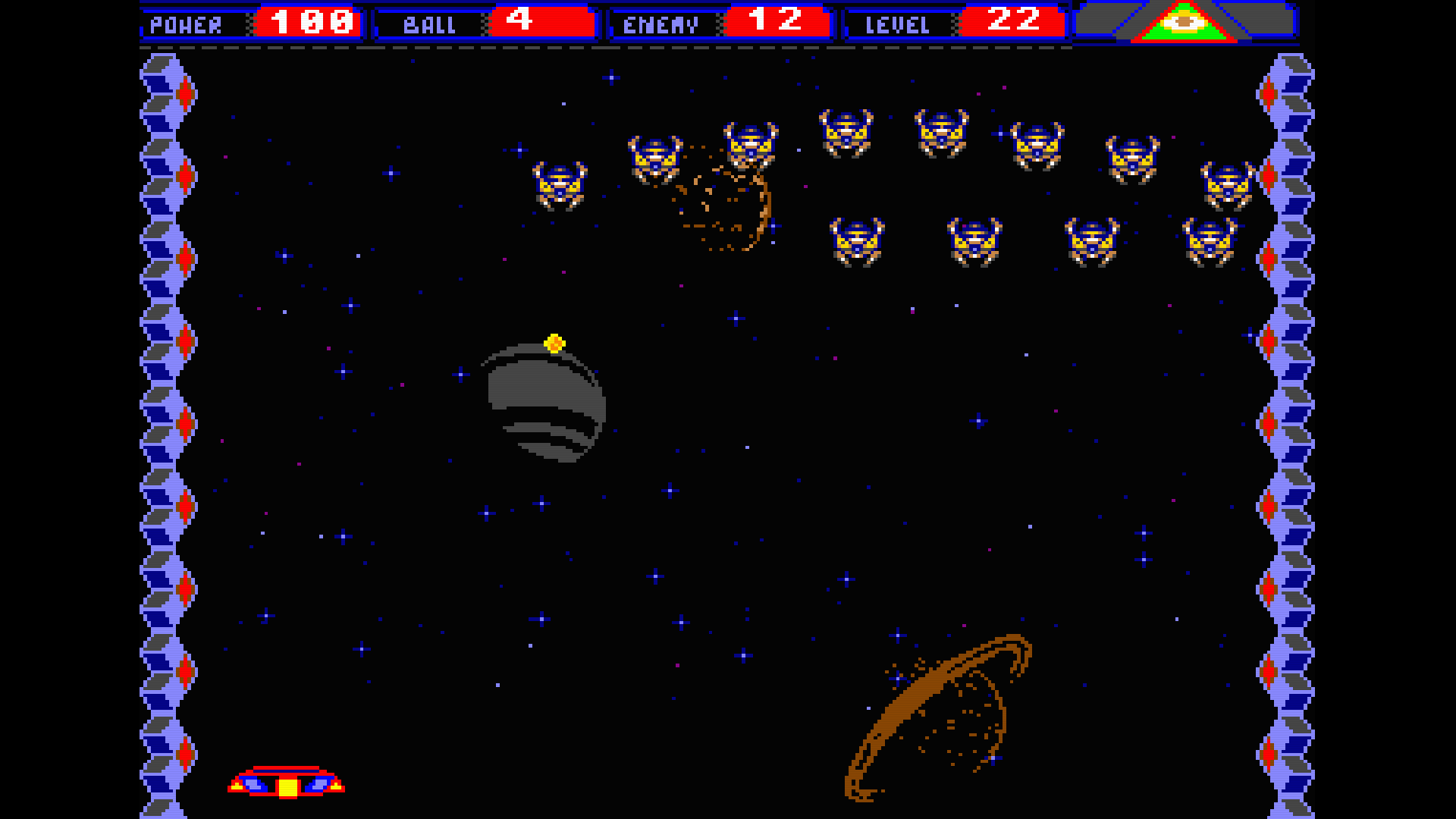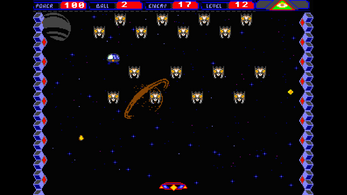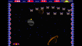 Invanoid is an experimental retro game that combines classic Space Invaders and Breakout mechanics into one intense arcade battle. The player controls a paddle at the bottom of the screen, deflecting projectiles and destroying ranks of enemies who are constantly descending.